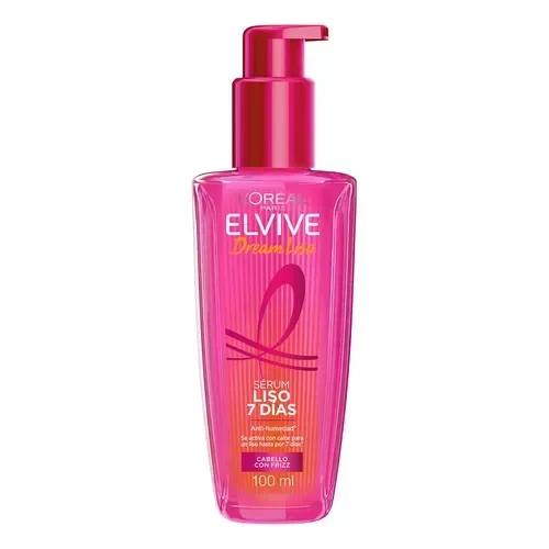 El serum de ELVIVE DREAM LISO, es un tratamiento de alisado en casa potencializado con [Keratina V* + AHA]. Su formula se activa con calor para alisar el pelo hasta por 7 días y controlar el frizz, creando una barrera protectora anti-humedad.